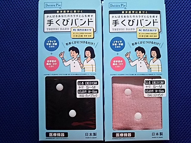 > デコラピエ手くびバンド 右手くびにつけるだけ 2個ピンク。黒 サイズS-M 手首まわり14-16cm 日本製 定価1箱2000円新品未使用品以上