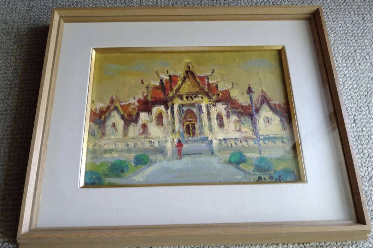 - 【貴重 油彩】土界雄『大理石寺院・A バンコク』F4号 サイン有 額入り 裏面に署名落款 肉筆 油絵 フォービズム 真作か模写か不明