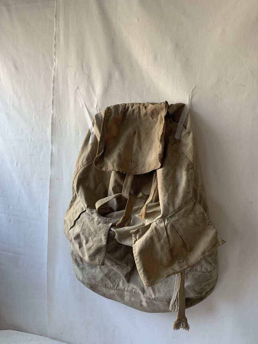 - 旧家蔵出し 経年の雰囲気が素敵な布製リュック 収納アンティークビンテージ古道具コレクション店舗什器昭和レトロ飾りオブジェディスプレイ