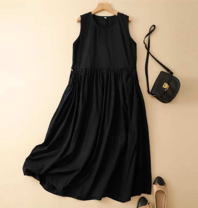- 人気推薦 /カジュアル ポケット付き マキシワンピース レディース ノースリーブ ロングワンピース 体型カバー 大人気 着痩せ 無地 /黒