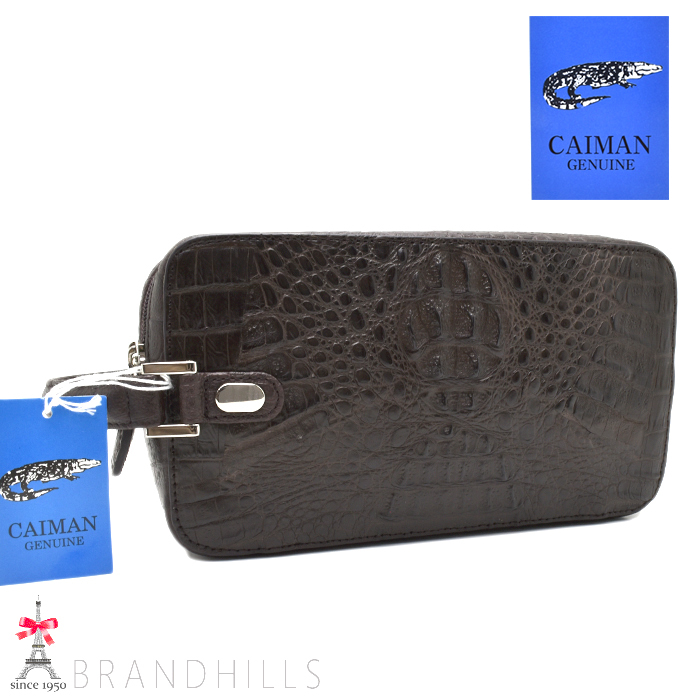 - カイマン セカンドバッグ メンズ マット加工 ブラウン Wファスナー コンパクト 紳士用 ワニ 新品