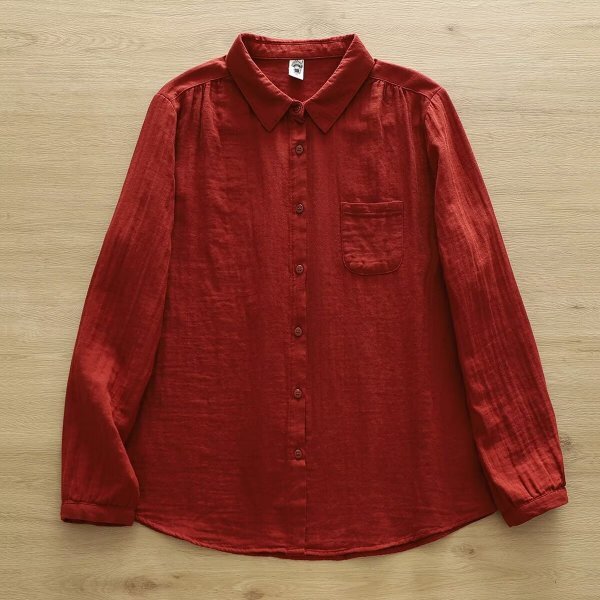 - c 2508 ダブルガーゼ フリーサイズ チュニック トップス ナチュラル 綿100% 通気性肌触り抜群 サラサラ ゆったり レッド
