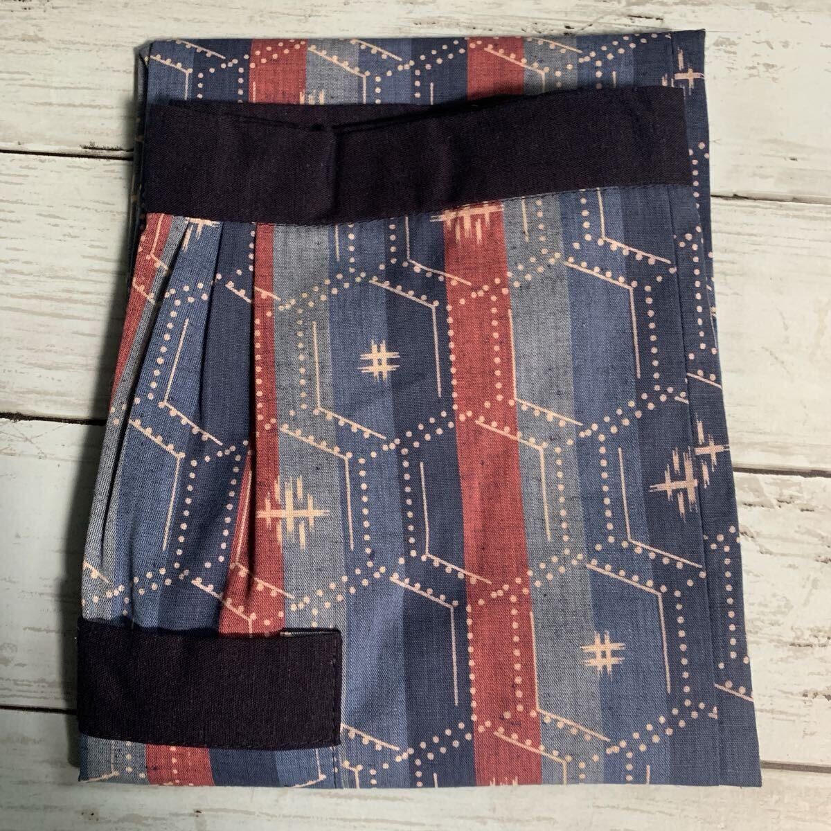 - ☆銀座 めうがや エプロン 前掛け 絣 雪ん子 生地 リメイク 素材 ハンドメイド 古布 型染め 手作り パッチワーク カスリ かすり (A-2777)