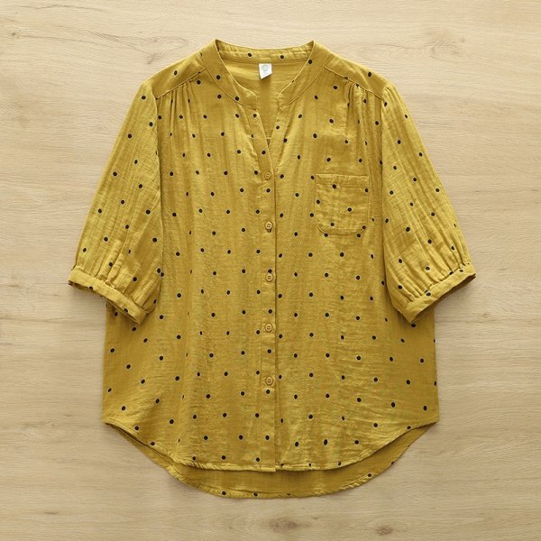 - c 2508 ダブルガーゼ フリーサイズ チュニック トップス ナチュラル 綿100% 通気性肌触り抜群 サラサラ ゆったり ドット柄 半袖3
