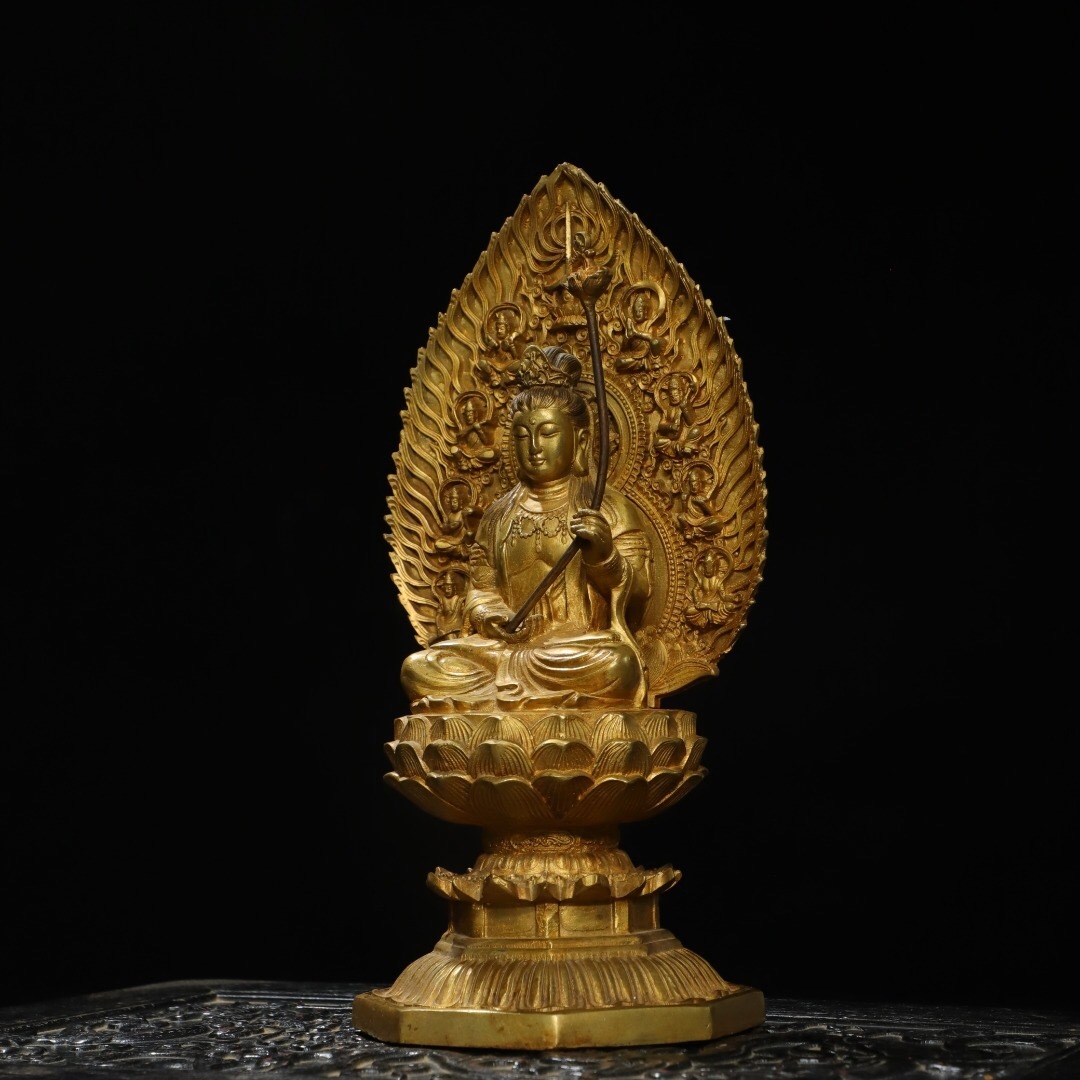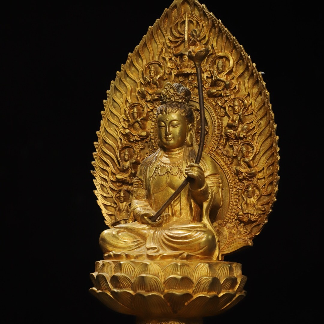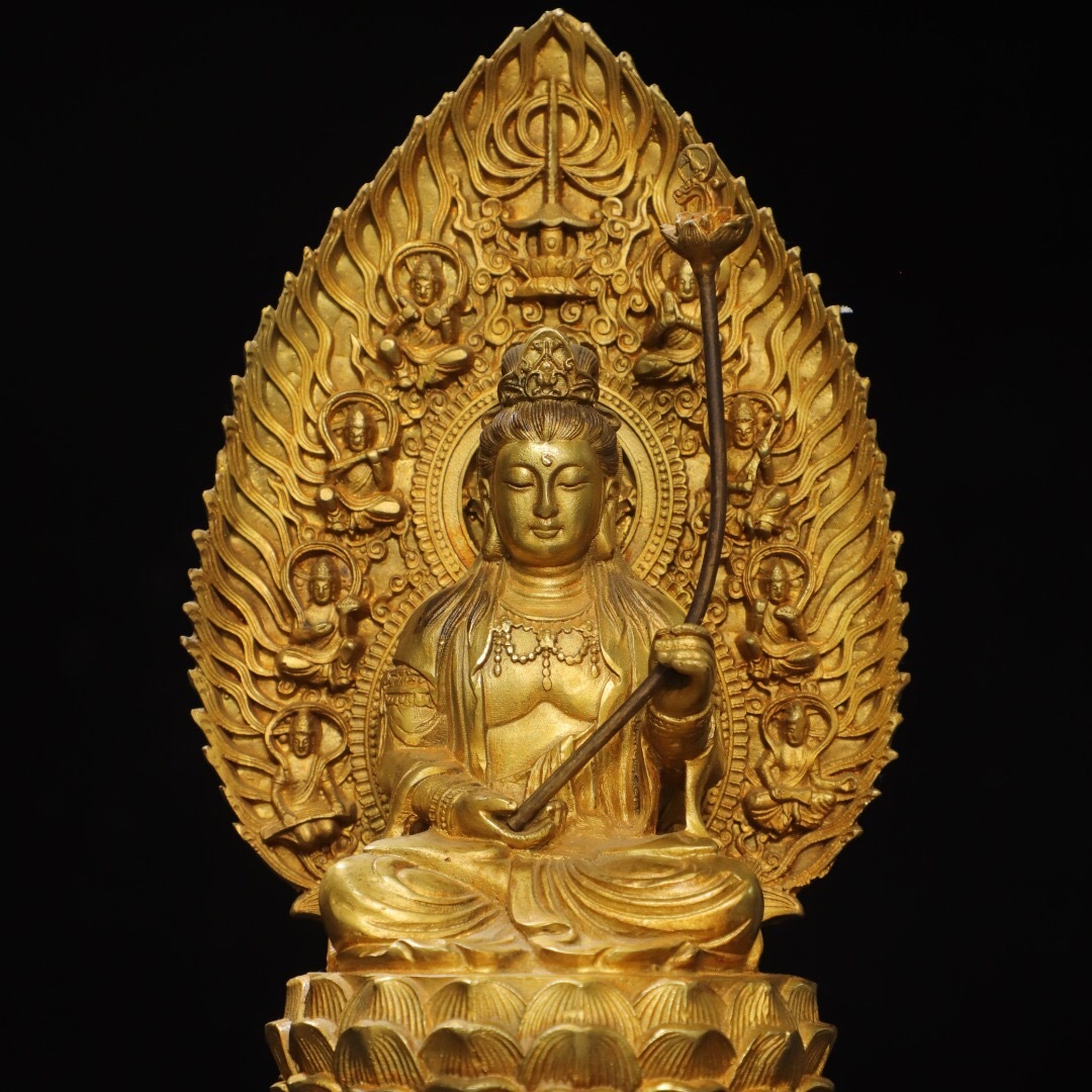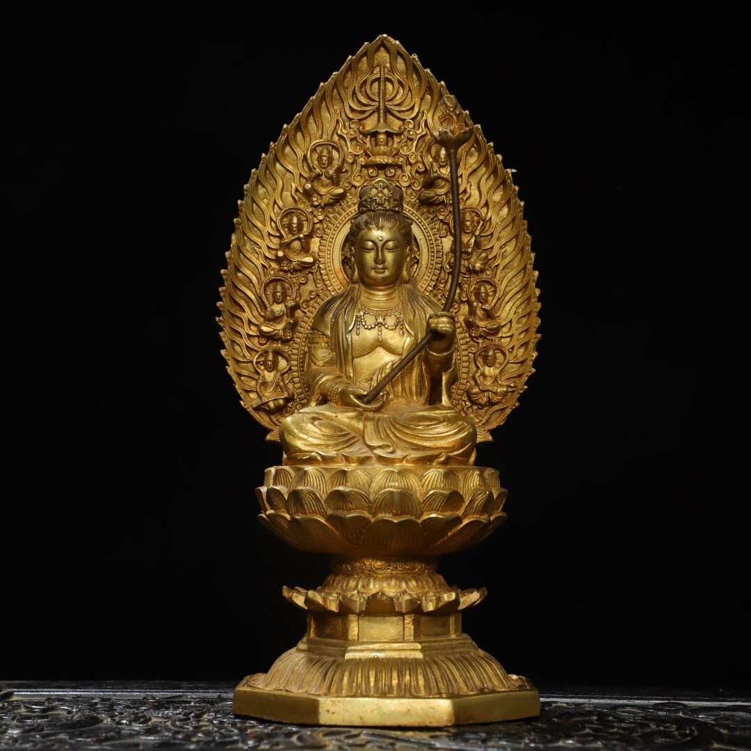 - ▽鴻▽ 銅製 塗金 大勢至菩薩像 仏像 宗教 仏教古美術 供養品 古賞物 古董品 時代物 稀少珍品 中国古玩 中国古美術