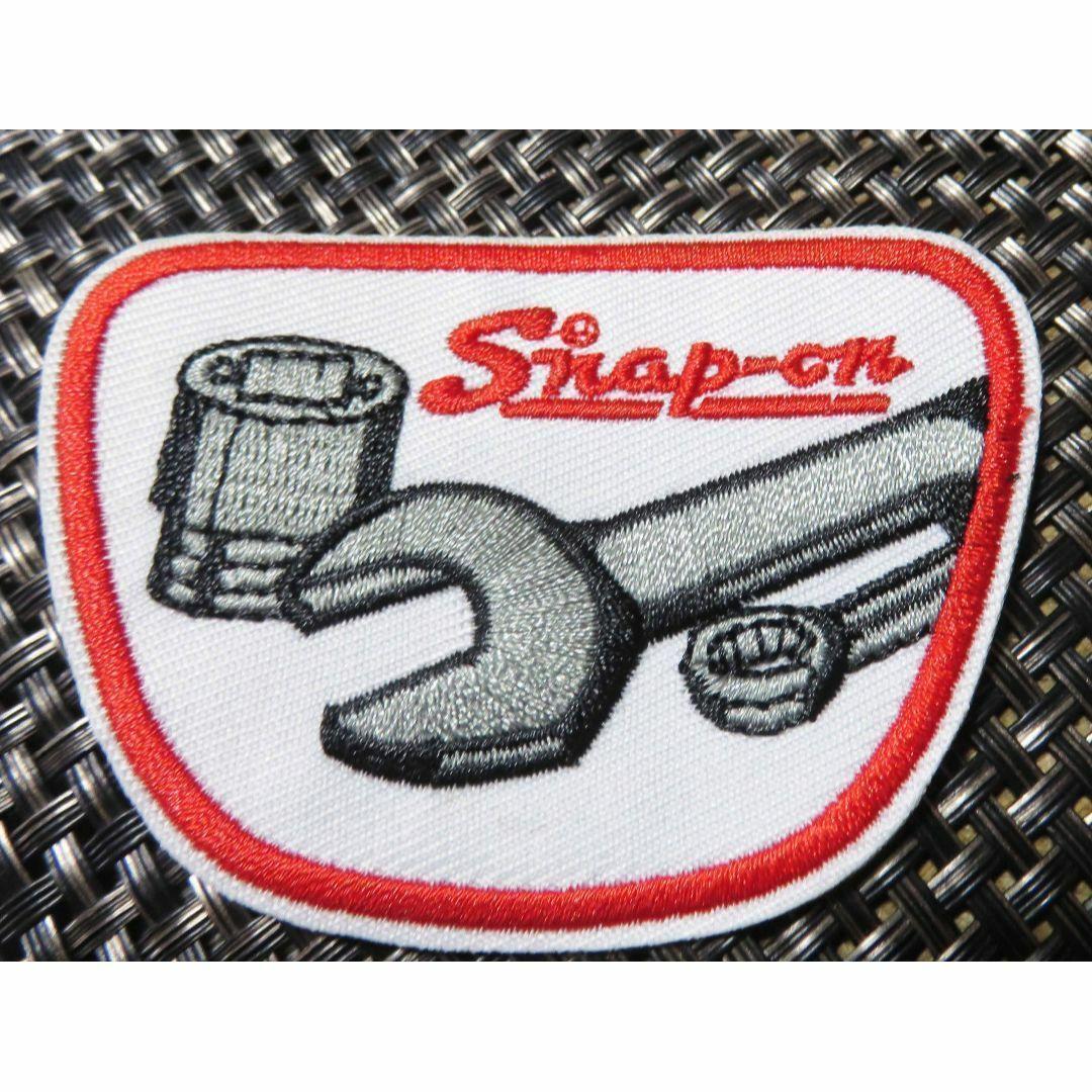 > 《白工具スパナ》激渋Snap-on スナップオン 刺繍ワッペン◇自動車 修理整備 ◆オートバイ バイク 二輪車 バイカー◇ ■洋服・衣類・衣服DIY