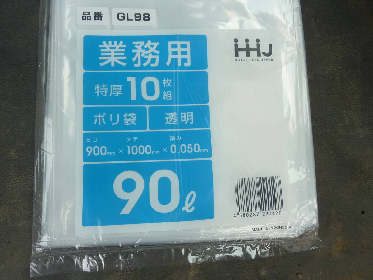 - 送料無料 200枚 まとめて 未使用 現状販売 GL98 90L 特厚型 0.05㎜ 透明 業務用 ゴミ袋 透明 ポリ袋 10枚入り20袋