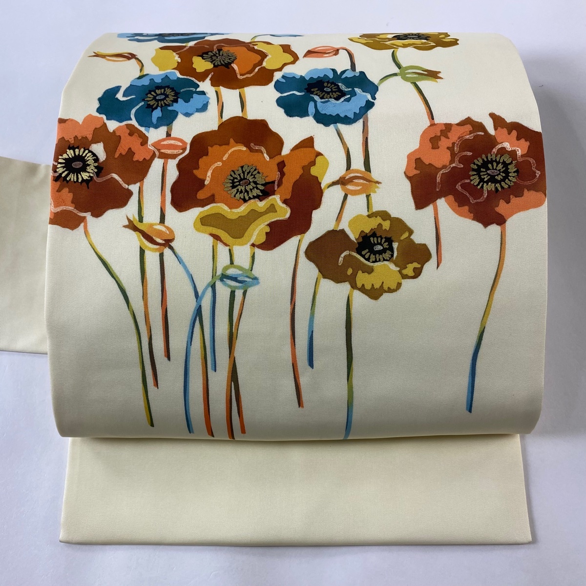 - 名古屋帯 秀品 アネモネ 金彩 薄黄 正絹 【中古】