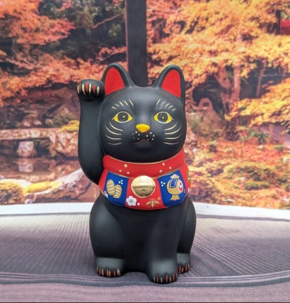- 招き猫 縁起物 福づくし招き猫 右手上げ 黒 小 置物