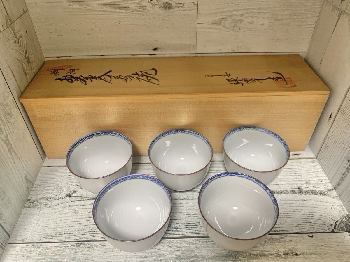 > 清水焼 京焼 平安緑翠 湯呑み 5客セット 茶器 シンプル 湯飲み 茶碗 木箱付き
