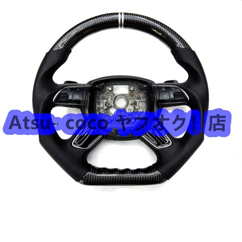 - AUDI アウディ A3A5A7A4A6 Q5Q7Q3S3S4R8S5RS6 リアルカーボン&パンチングレザーハンドル ステアリング 光沢カーボン A/B/C/D/E 可選1P