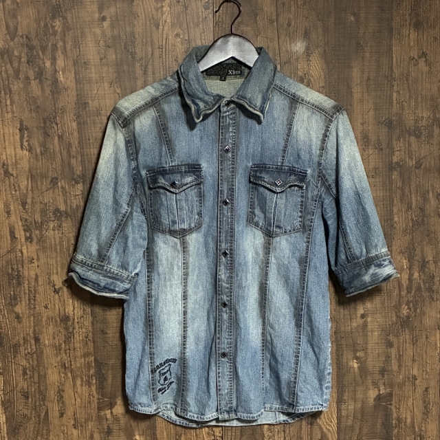 - C1◇Xfrm | エクスファーム デニムシャツ 七分袖 インディゴブルー メンズ 3サイズ 中古品