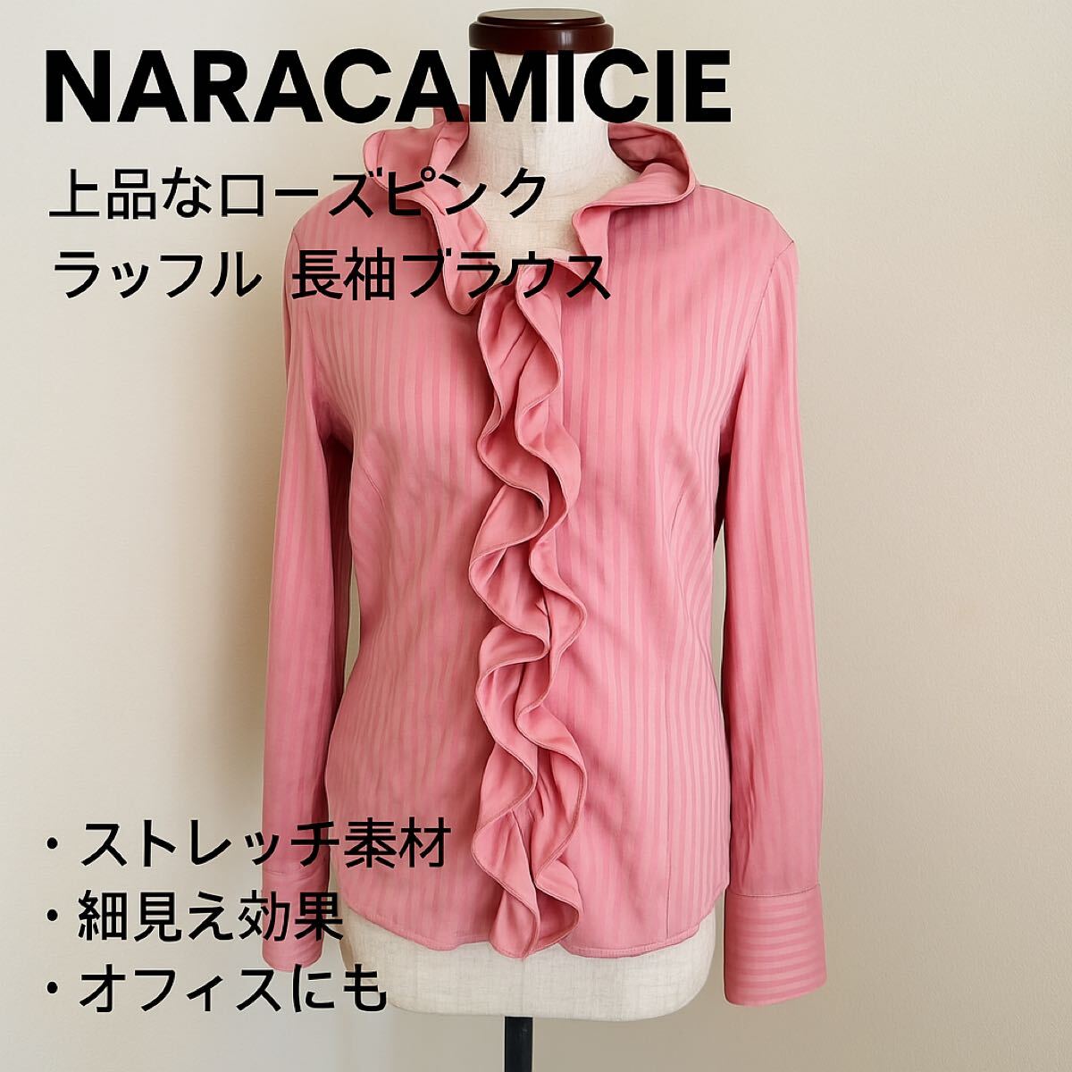 - NARACAMICIE ナラカミーチェ ピンク 長袖シャツ 伸縮性 上品 コットン混 お出かけ オフィス
