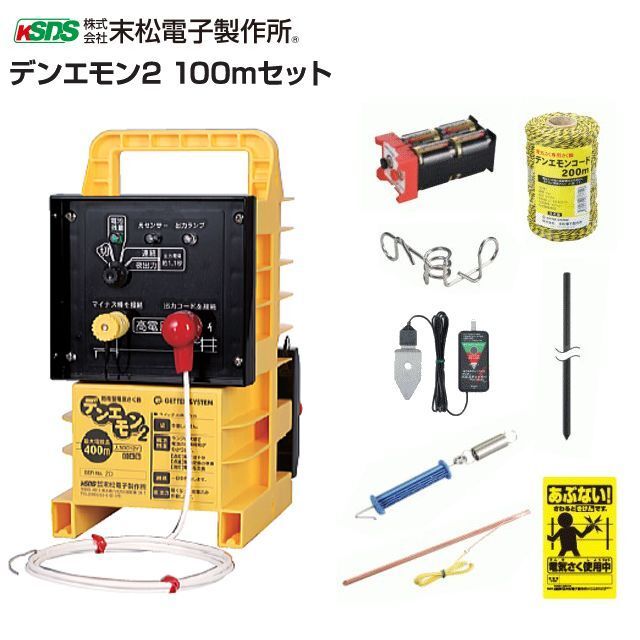 - [特売] 電気柵セット 末松電子製作所 デンエモン2 100mセット 小さい田畑など家庭菜園に最適な電柵 最大電線長:200m