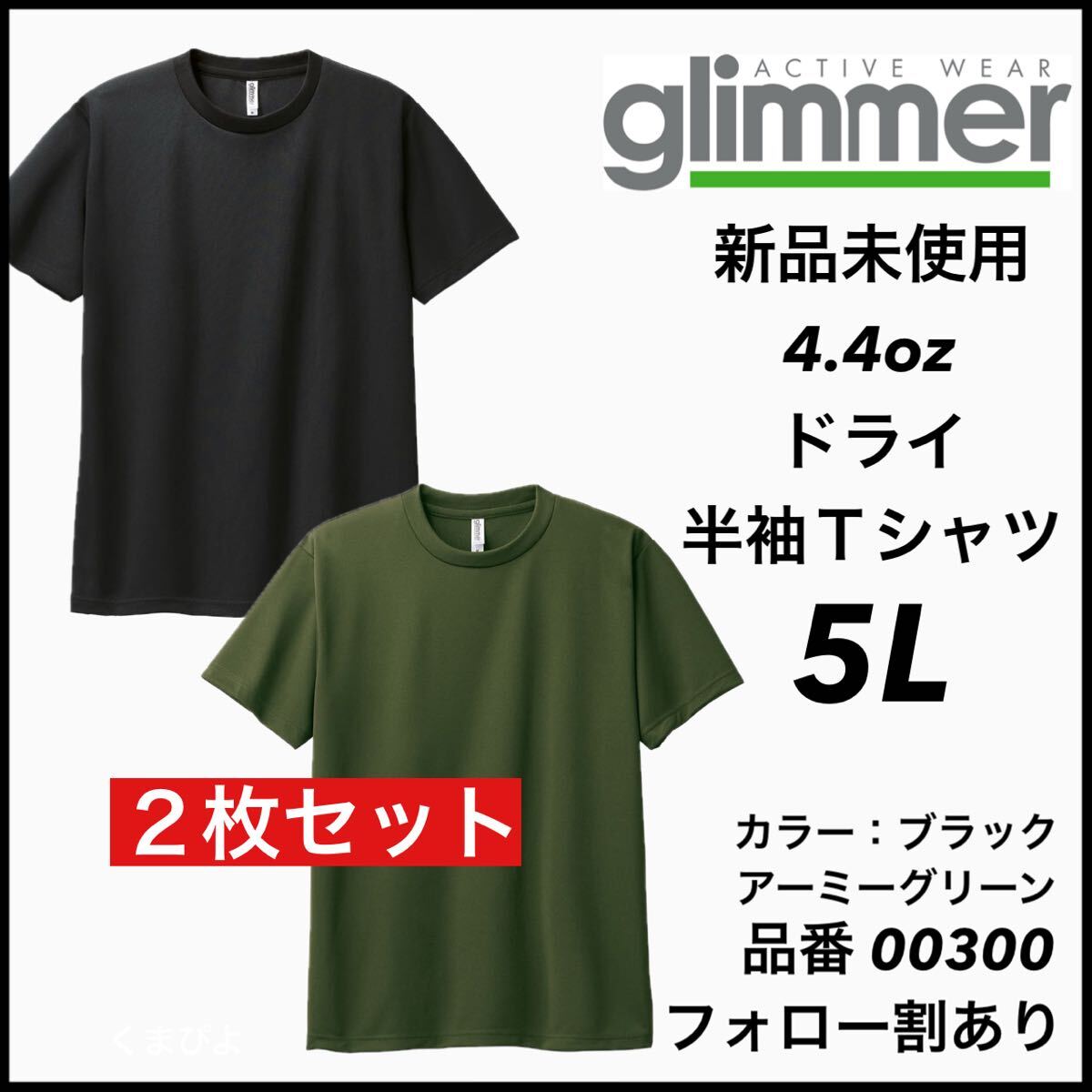 - 新品未使用 グリマー 4.4oz ドライ半袖Tシャツ 黒グリーン 2枚セット 5Lサイズ スポーツ トレーニング 吸汗速乾 ユニセックス glimmer