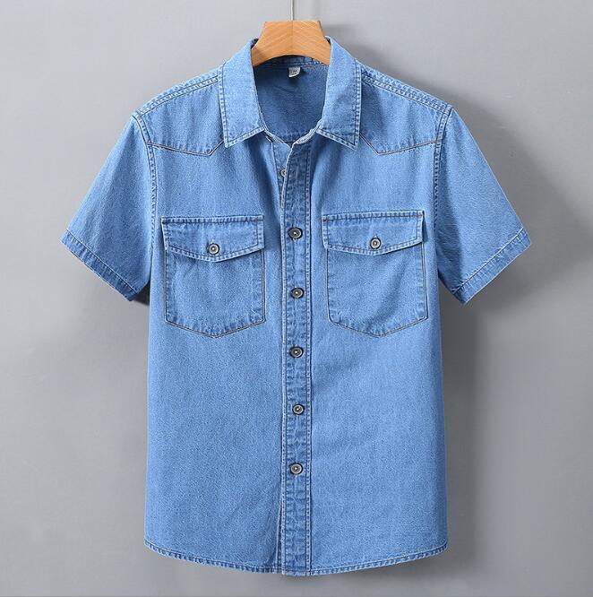 - 新入荷新品半袖シャツ 半袖デニムシャツ メンズ シャツ トップス カーゴシャツ ワーク ウエスタン ブルー サイズ選択可