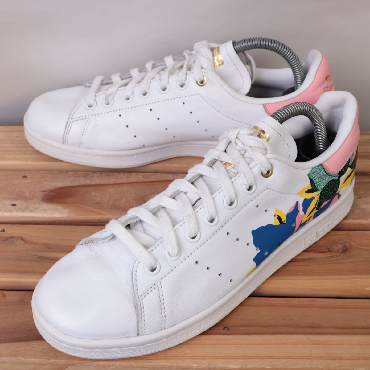 > z958 アディダス スタンスミス US9 26.0cm/白 ホワイト ピンク 柄 adidas STANSMITH レディース スニーカー 中古