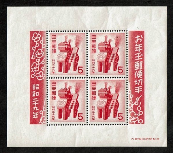 - N771■1954年 年賀切手 三春駒 小型シート■未使用・良好