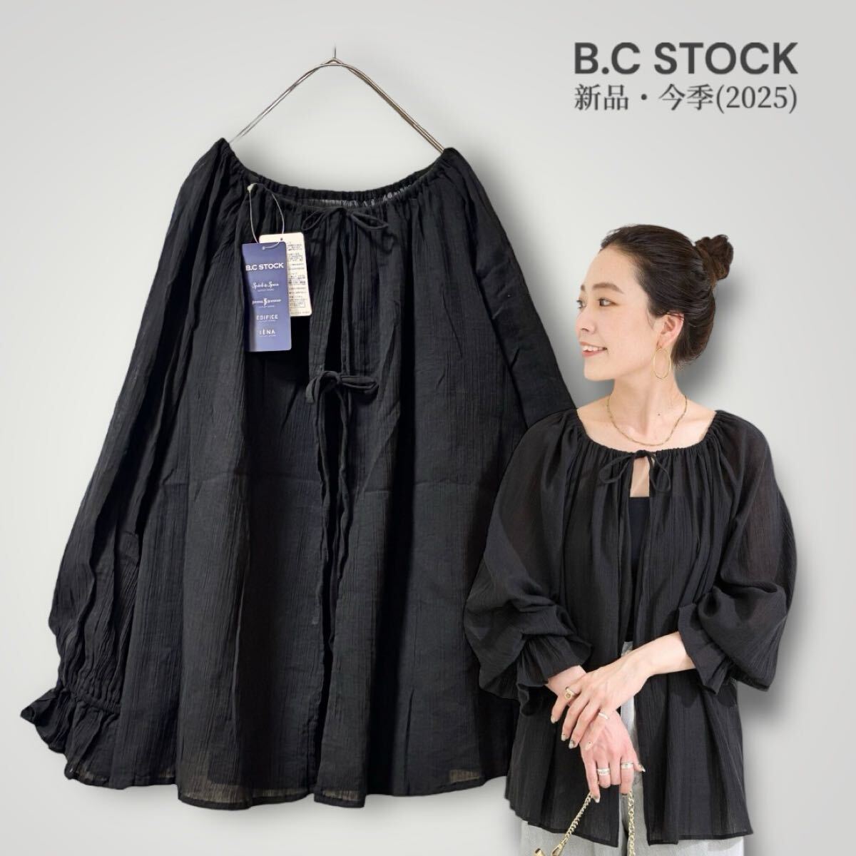 > 1950 新品・今期2025【B.C STOCK|ベーセーストック】コットンボイルの2WAYブラウス ゆったり 黒 前後着 エアリー 羽織り 長袖 ナチュラル