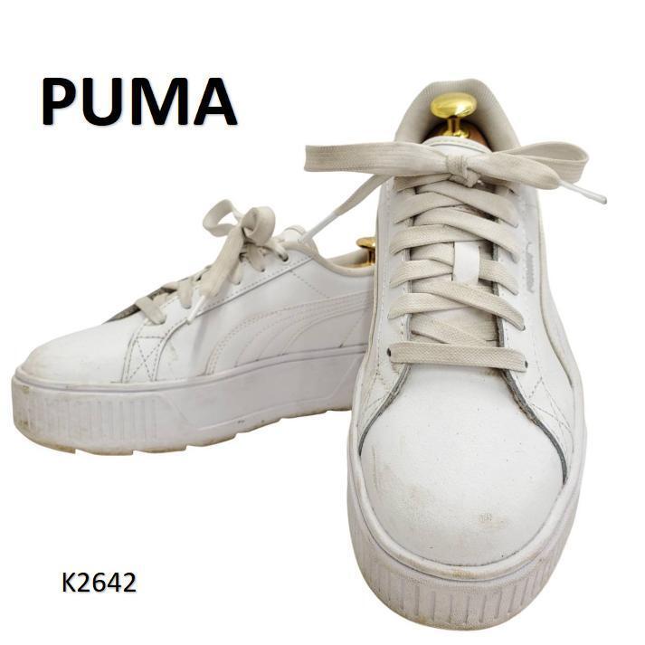 - プーマ カルメン 厚底スニーカー 本革 レザー シルバーロゴ 23cm