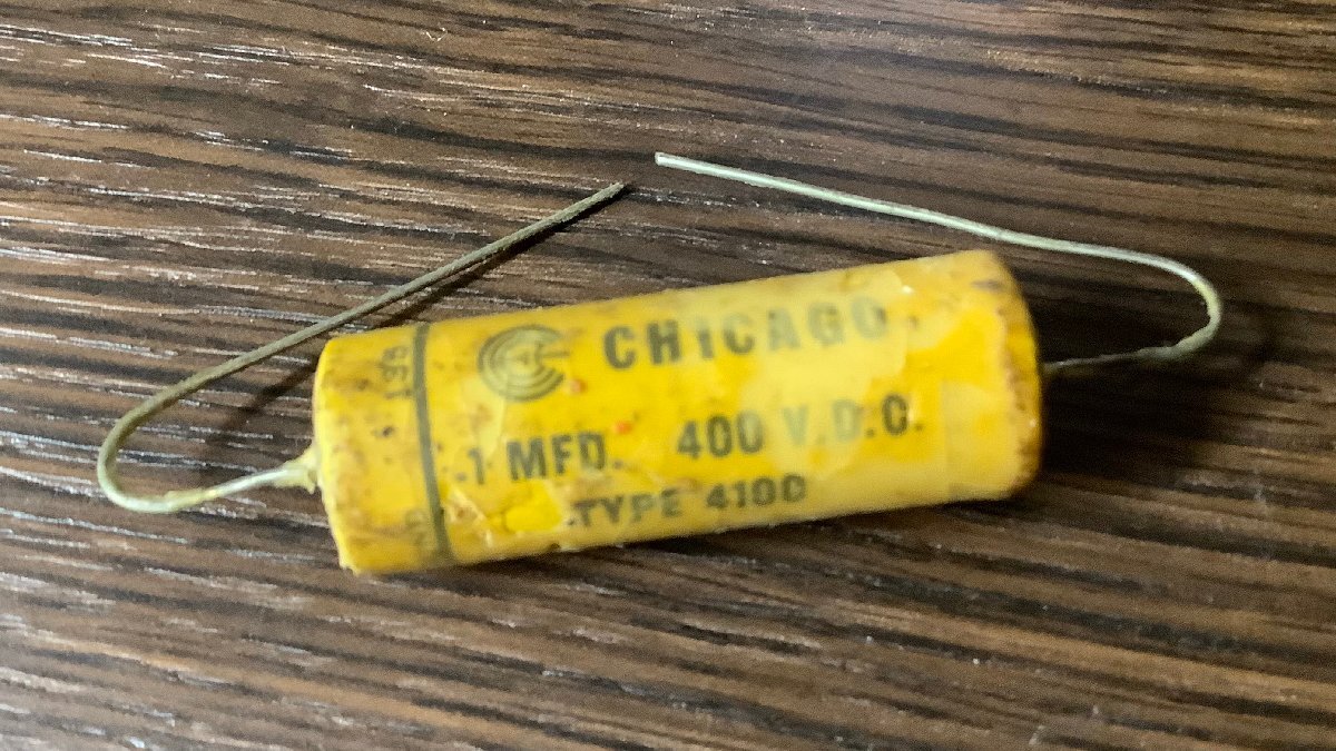 ビンテージ Chicago Wax コンデンサ 新品です。ギターではテレキャス等の純正数値が.1のシングルに最適です。その他電子部品向け。Chicago Wax, ほとんど数が残っていない貴重なコンデンサです。Chicagoは今の時代においてはレアなブランドとなっており、数も少なくレアな存在ですが、Cornell、Spragueと並ぶ良質なブランドです。バイト感が強く、質の高い奥行きがありますが、古き良きアメリカンサウンドを彷彿とさせる音質です。枯れたクランチは最高ではないでしょうか。----------------------------------------------------------------