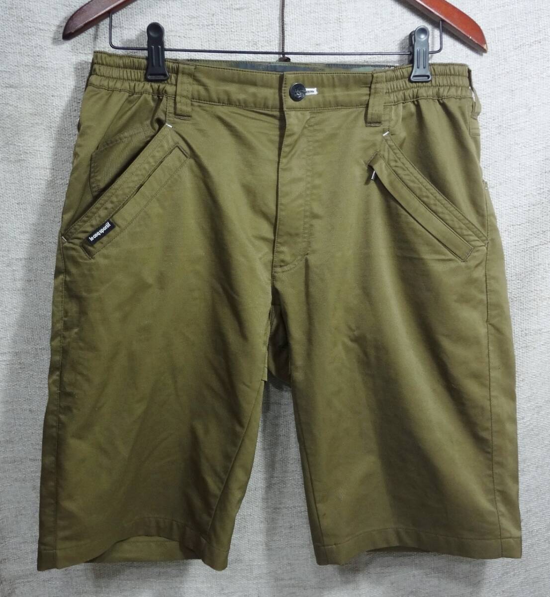 - 【概ね良好】 le coq sportif ルコック ハーフパンツ カーキ色 ロゴ刺しゅう メンズL ゴルフウェア ポリエステル100%