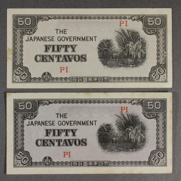 - 大東亜戦争軍票《 ほ号 50センタボ 2枚 》フィリピン方面 未使用? t0126