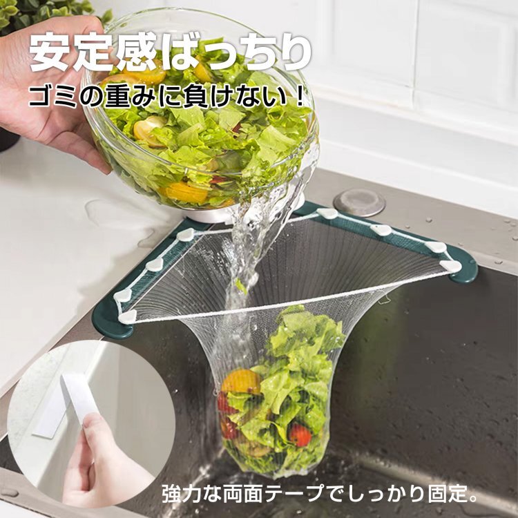 - カラー:グリーン 水切りネットホルダー ネット50枚セット 水切りネット ネットホルダー 三角コーナー いらず