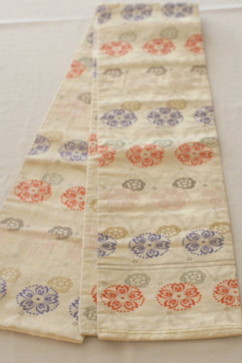 - 半幅帯 レトロ 刺繍 和柄 桜 花柄 古いものです。