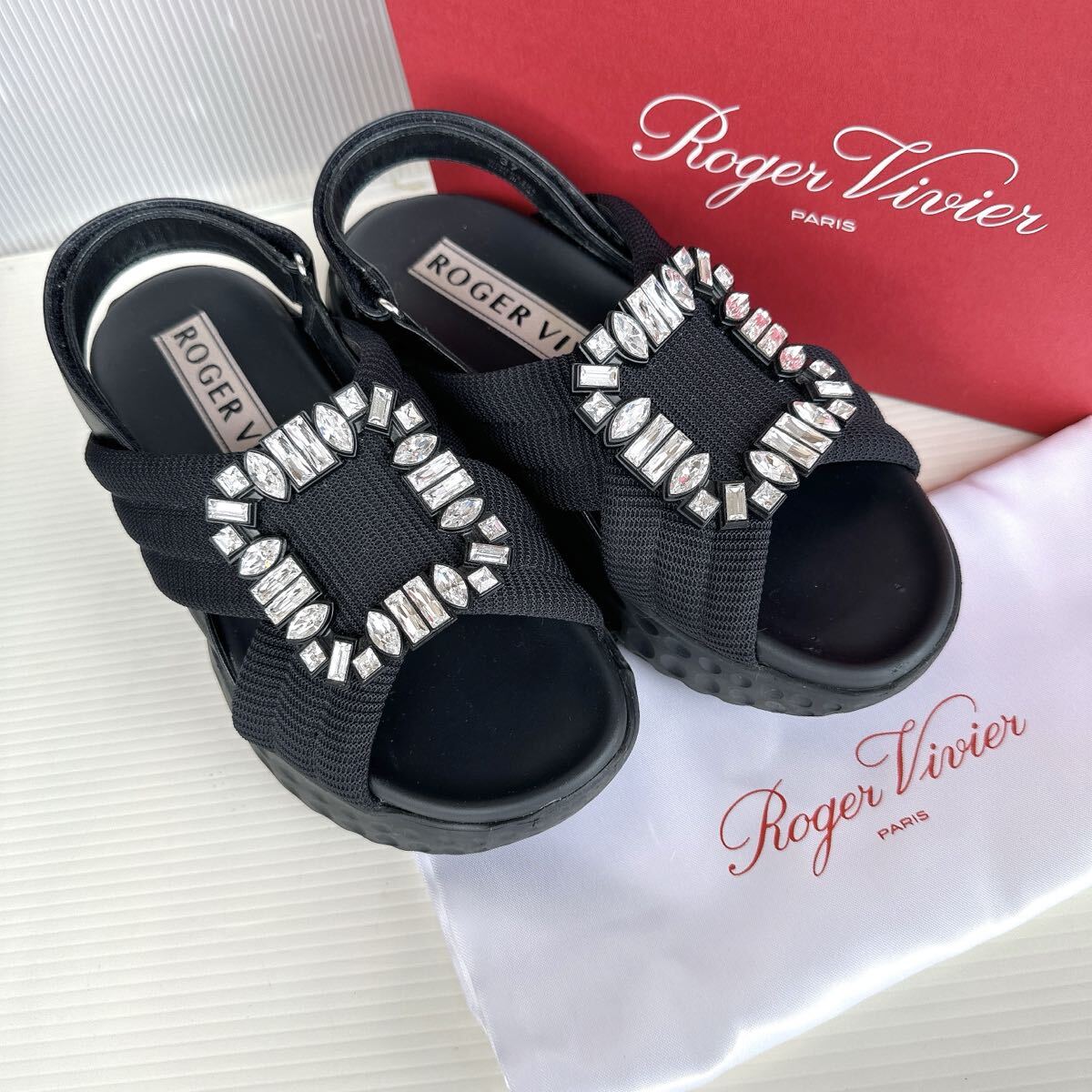- roger vivier Viv Run ロジェヴィヴィエ ヴィヴラン 厚底 ビジュー スポーツサンダル フラットシューズ 極美品 37 レーディス 靴 黒