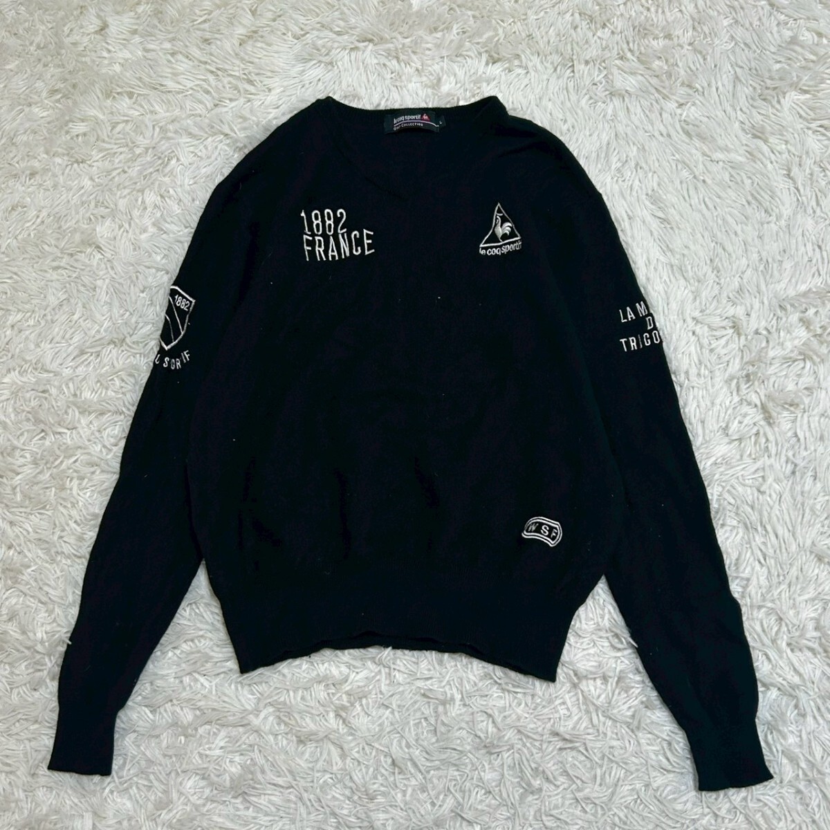 > le coq sportif ルコックスポルティフ ニット クルーネック 刺繍 ゴルフウェア セーターブラック サイズL