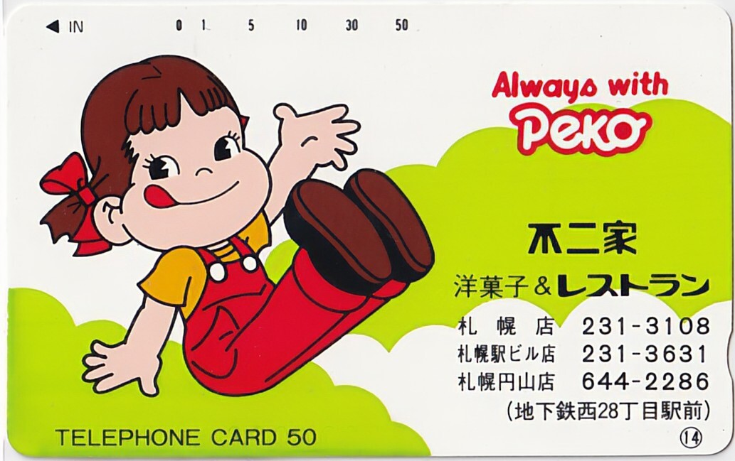 - =不二家ペコちゃん= 「札幌 駅ビル 円山 No.14」100枚販売テレカ #w