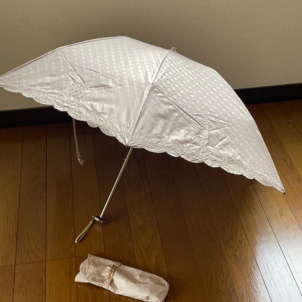 - 送料無料 即決 中古品 良品★ゲラルディーニ GHERARDINI ベージュ レース 遮光晴雨兼用日傘雨傘 折り畳み傘 軽量
