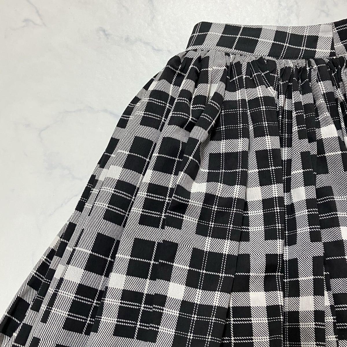> BIRTHDAY BASH バースデーバッシュ モノトーン チェック タック 裏地付き ホック ジップ ボリューム 重量感 フレア ひざ丈 スカート S