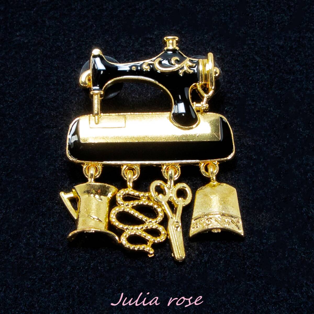 - アンティーク風ミシンとチャームのピンブローチ レトロ風黒ミシン チャーム(ハサミ・糸等)ピンブローチ 新品