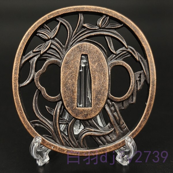 - SY201 日本刀装具 刀鍔 蘭図 合金製 現代品 つば ツバ 刀剣美術 重さ約89G 厚さ約6mm