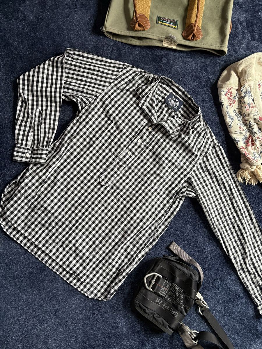 - 超美品 日本製 TOKYO NATURAL HIKING CLUB トウキョウ ナチュラル ハイキング クラブ ギンガムチェック 襟ウイングカラー 長袖シャツ sizeM