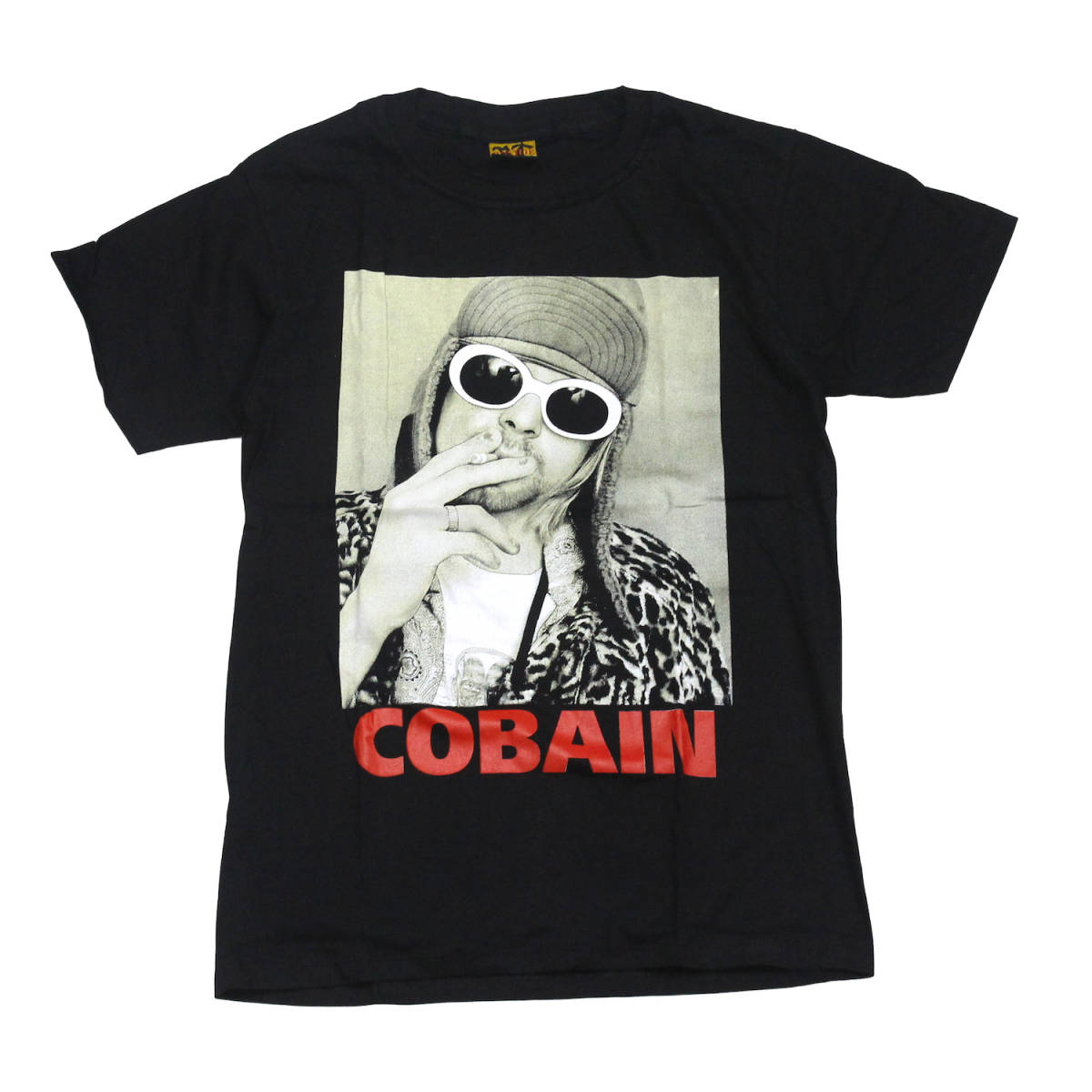 - カート・コバーン ロックバンド ニルヴァーナ ストリート系 人気 デザインTシャツ おもしろTシャツ メンズ 半袖 ★tsr0889-blk-xl
