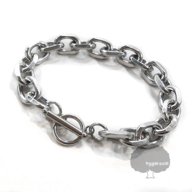 > YGG★新品 Tバー付き チェーン ブレスレット 21cm チェーン幅1.2cm シルバー 鎖 太め ワイド バングル アクセサリー メンズ 韓流