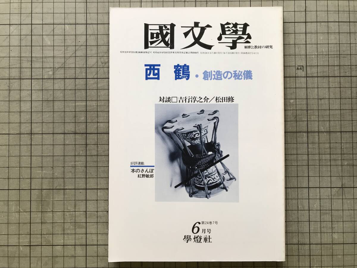 > 『国文学 解釈と教材の研究 第24巻7号 西鶴 創造の秘儀』吉行淳之介・暉峻康隆・瀬木慎一・野口武彦・富士正晴 他 学燈社 1979年刊 11555