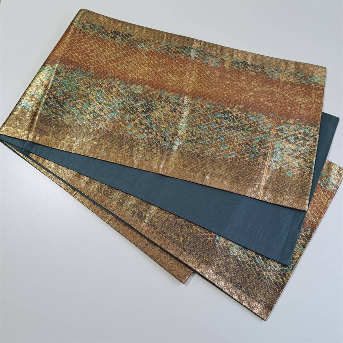> 即決■着物の越田■幅31長さ434 正絹 袋帯 金 ゴールド 金糸あり ■み11J05