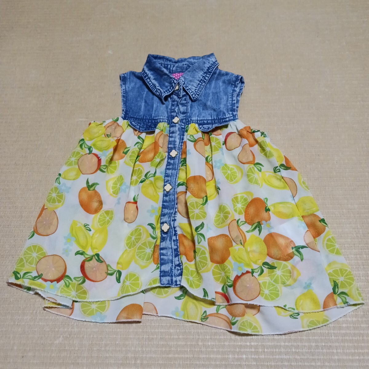 - ベビー服 ワンピース 女の子 みかん&レモン柄 90cm