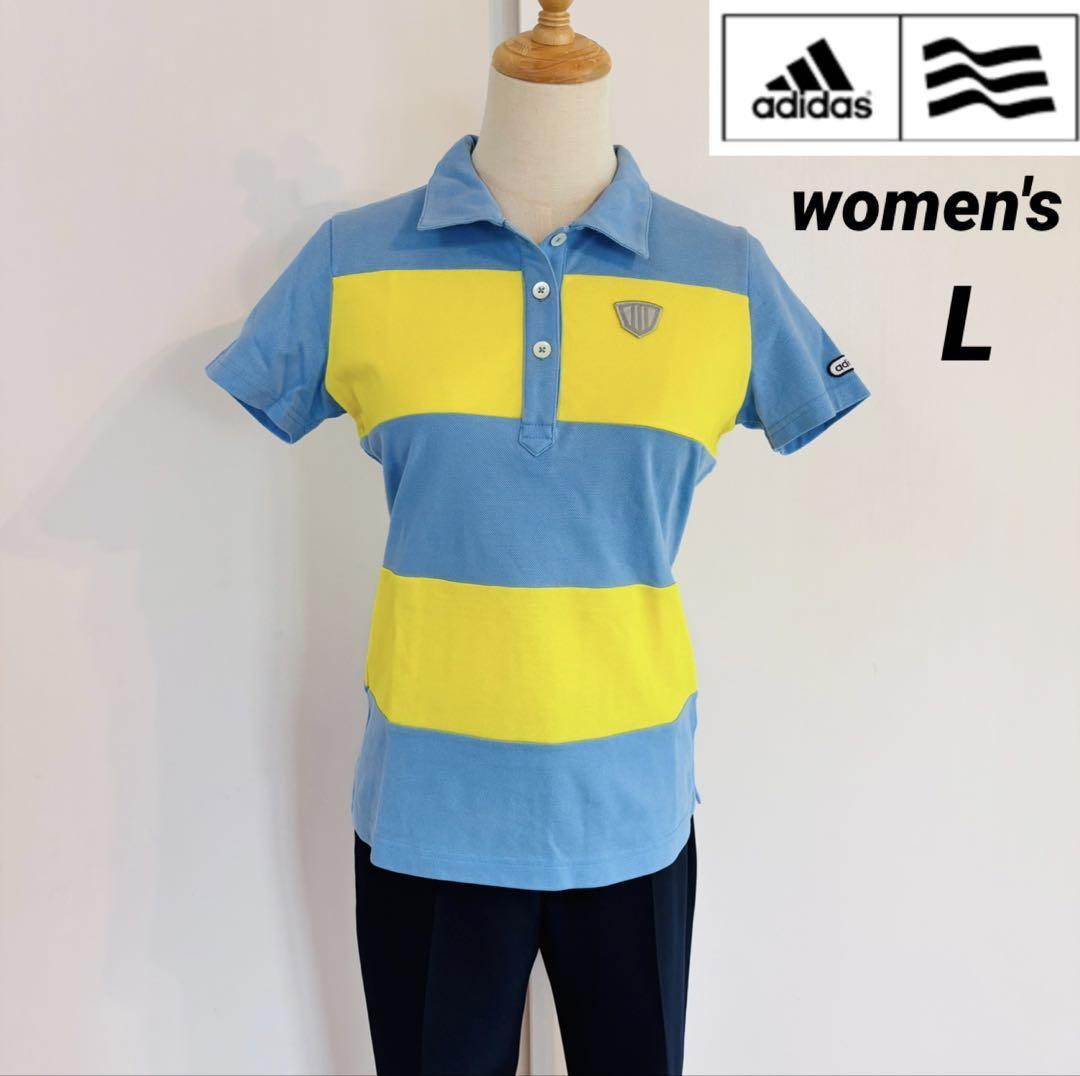 - adidas golf アディダス ゴルフ レディース 半袖ポロシャツ 刺繍ロゴ ボーダー L ブルー系