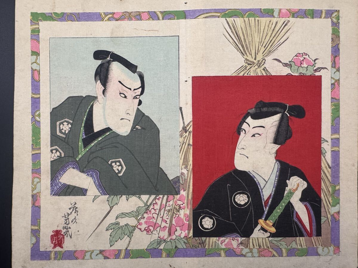 - 【真作】本物浮世絵木版画 落合芳幾「武者絵」明治期 役者絵 錦絵 中判 保存良い