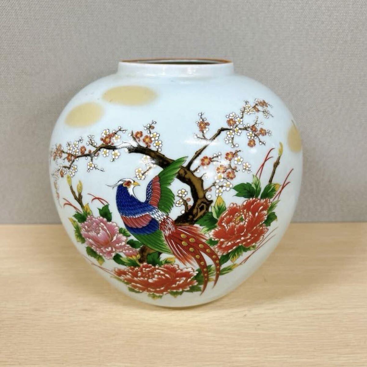 > ★九谷焼 九谷陶真 陶真銘 色絵花鳥文花 高さ21cm 口径7.8cm 壺 壷 花瓶 花入 日本美術 日本製 雉 梅牡丹