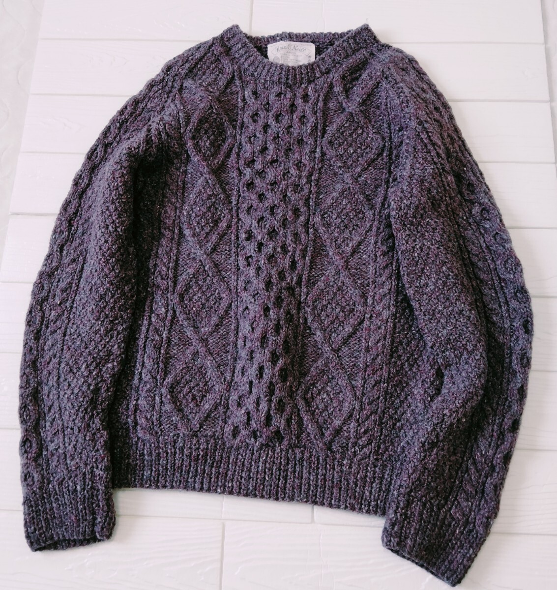 > una o'neill*フィッシャーマンニット*アランニット*アイルランド製*あずき色*肉厚*セーター*ハンドニット*ざっくり*メンズL~LL位*ウール100