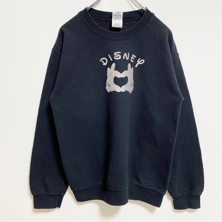 - 古着 used GILDAN ギルダン DISNEY ディズニー 長袖プリントスウェット トレーナー クルーネック 黒 Sサイズ