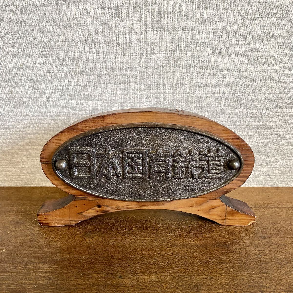 - 日本国有鉄道 プレート 銘板 木製台付き / 国鉄 鉄道プレート 金属製 鉄道グッズ 当時物