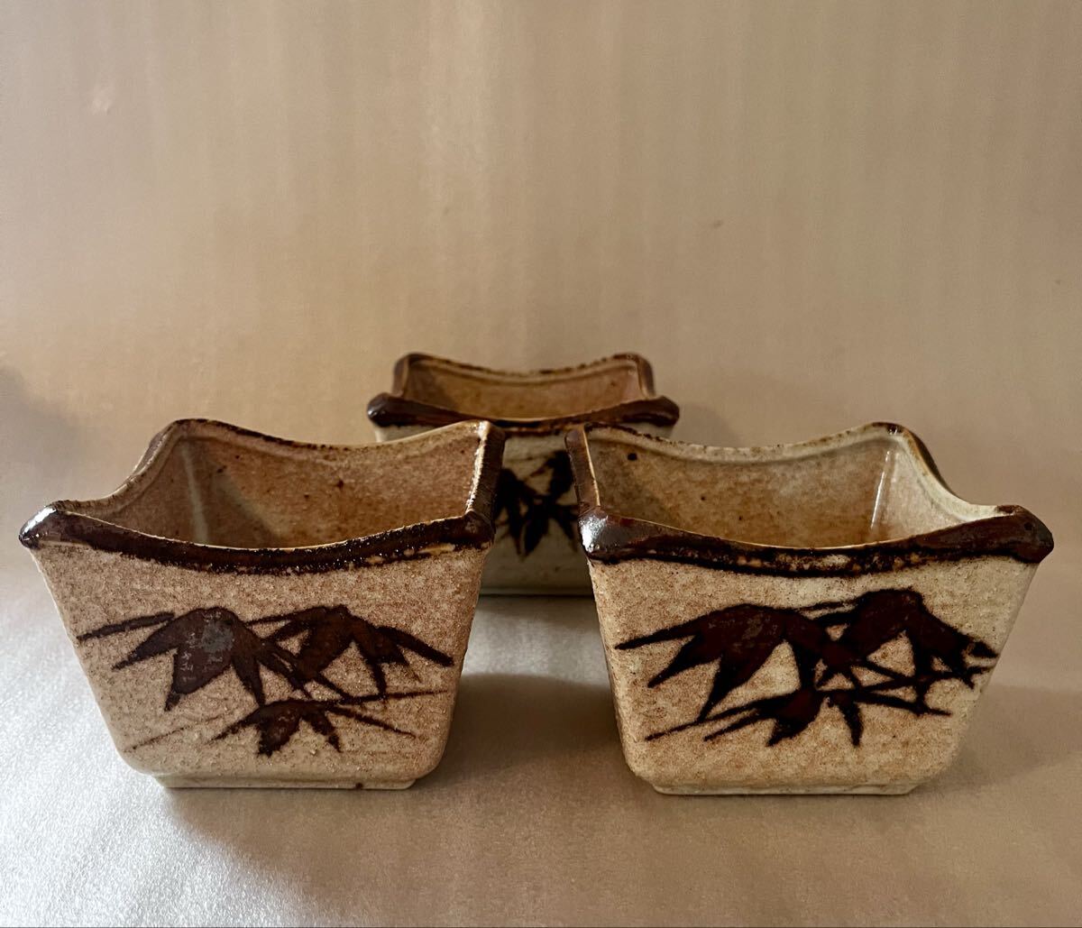 - 未使用 新品 美濃焼 志野 角鉢 3客 3個 セット 絵志野 和食器 料亭 懐石 日本料理 小鉢