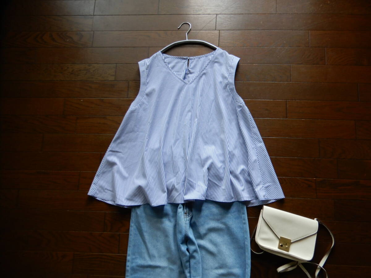 - 【URBAN RESEARCH DOORS/アーバンリサーチドアーズ】大人可愛いノースリーブフレアーブラウス 白・ブルーストライプ柄